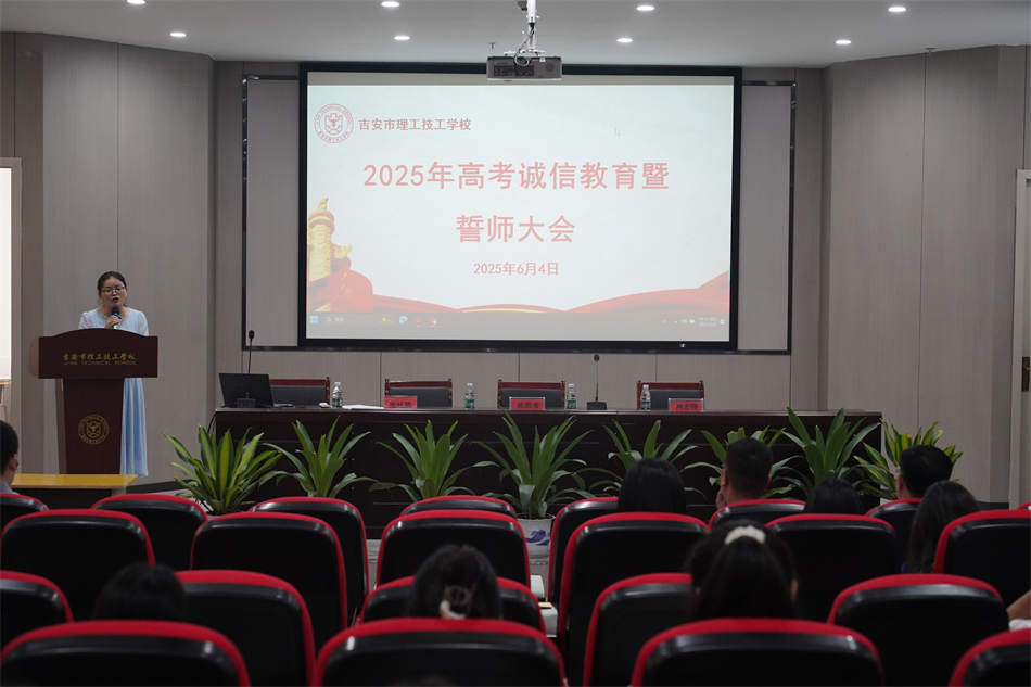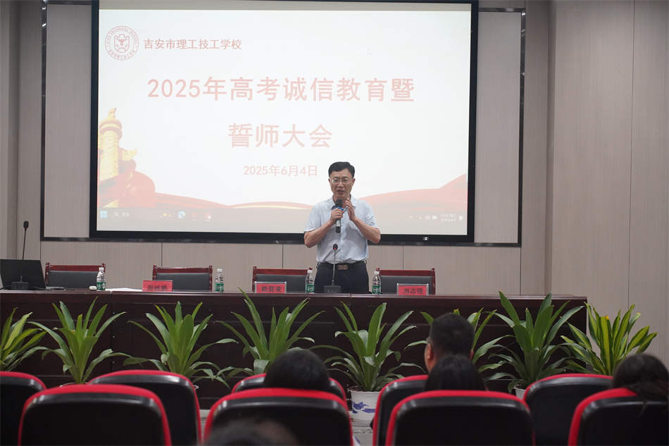 隨著2025年高考的日益臨近,6月4日下午,吉安市理工技工學(xué)校的綜合樓報(bào)告廳內(nèi)隆重舉行了2025年高考誠信教育暨誓師大會(huì)。執(zhí)行校長賴碧凌、教務(wù)處副主任周岐鵬、學(xué)工處副主任肖志強(qiáng)、班主任余盤盤及22級師生齊聚一堂,共同為即將踏上高考考場的理工學(xué)子們加油鼓勁,奏響青春奮進(jìn)的鏗鏘戰(zhàn)歌。