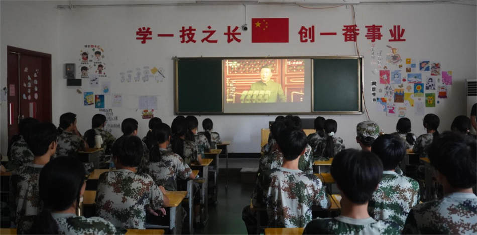 活動(dòng)引發(fā)強(qiáng)烈反響。當(dāng)看到抗戰(zhàn)老兵胸前的勛章在陽光下閃耀,師生們深刻體會(huì)到“今日和平”四個(gè)字的千鈞之重。無人機(jī)操控與維修專業(yè)的同學(xué)感慨道:“裝備方隊(duì)中的無人機(jī)作戰(zhàn)集群讓我看到科技報(bào)國的路徑,我決心學(xué)好專業(yè)技能,成為新時(shí)代的‘丁輝’。”這種從歷史觀照現(xiàn)實(shí)、以技能錨定未來的共鳴,正是此次觀禮最深遠(yuǎn)的教育意義。