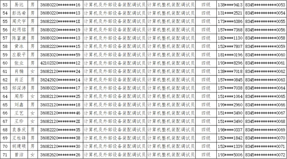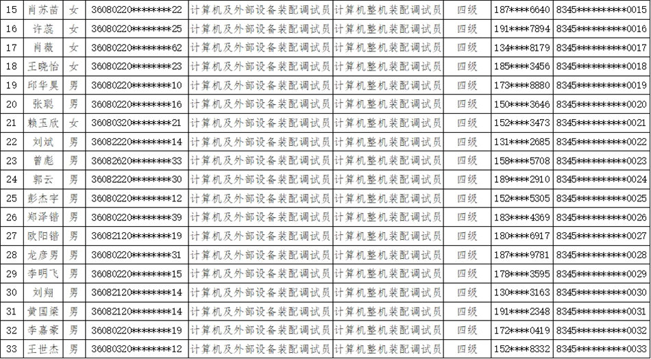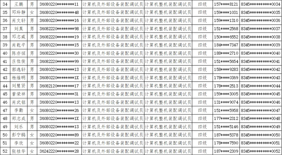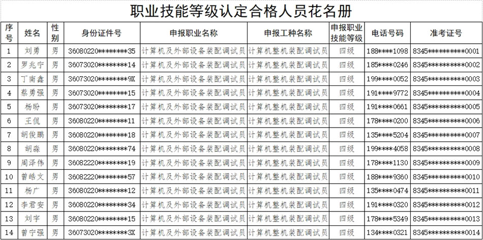 根據(jù)職業(yè)技能等級(jí)認(rèn)定組織實(shí)施規(guī)定,按照國(guó)家職業(yè)技能標(biāo)準(zhǔn),我校于2023年12月28日開(kāi)展了計(jì)算機(jī)及外部設(shè)備裝配調(diào)試員等級(jí)認(rèn)定,經(jīng)理論知識(shí)考試和專業(yè)技能考核,現(xiàn)將認(rèn)定考核成績(jī)合格人員名單進(jìn)行公示,詳見(jiàn)附件。